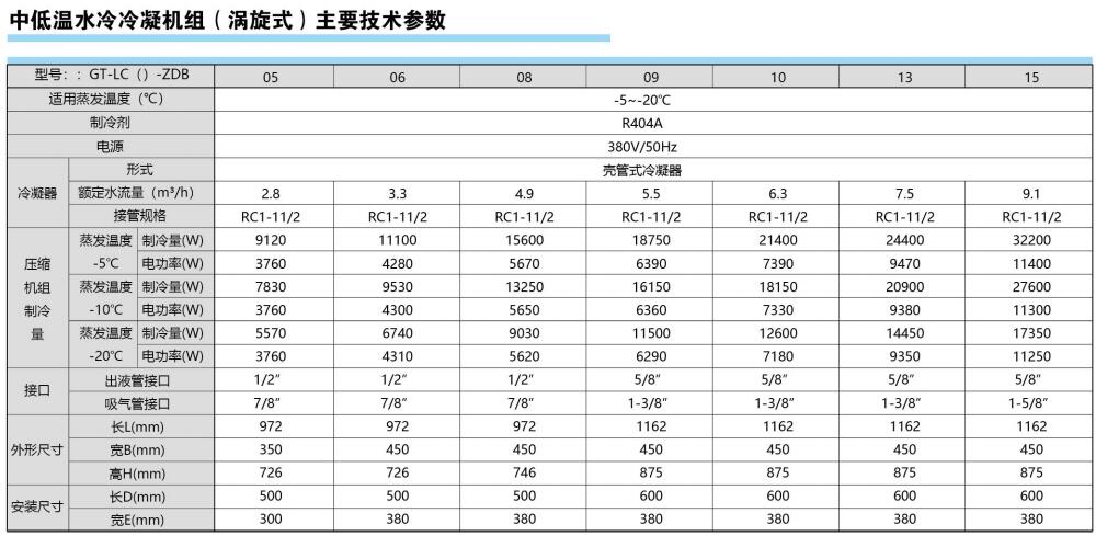 3) 水冷机组采用先进的高热流冷凝管、耐压无缝钢管、端板、端盖等组成的高效壳管冷凝器,质量可靠、性能优良